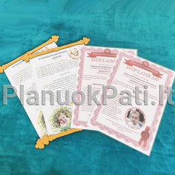Užsakant diplomą krikšto tėveliams, parašykite krikšto tėvelių ir vaikučio vardus bei šventės datą. E-mailu arba per mesengerį atsiųskite vaikučio nuotrauką, jei norėsite, kad ji būtų įdėta. Parašykite, ar reikės bendro diplomo ir įdarbinimo sutarties (jei krikšto tėveliai yra pora), ar dviejų atskirų.