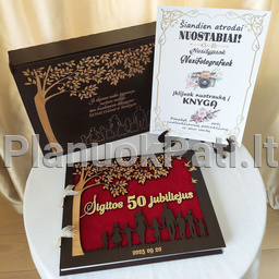 Kartu su knyga galite įsigyti medinę dėžutę knygai laikyti. Jos kaina 10 Eur. Dėžutėje gali būti ir speciali vieta USB laikmenai su nuotraukomis ar filmu (kaina + 2eur).