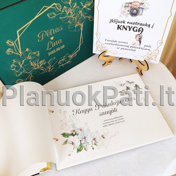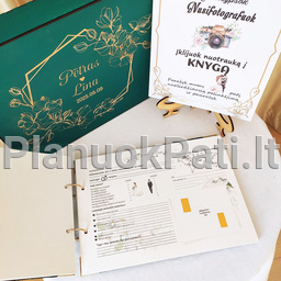 - Tinkama klijuoti nuotraukoms. Mūsų vestuvių svečių knyga su nuotraukomis pritaikyta ne tik svečių palinkėjimams, bet ir momentinėms ar fotoveidrodžio nuotraukoms įklijuoti, todėl jos tampa unikaliu fotografijų ir palinkėjimų albumu.