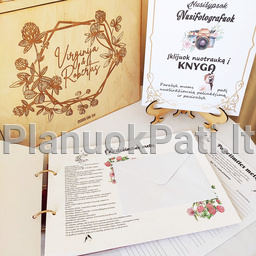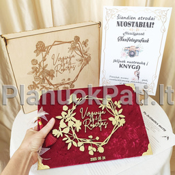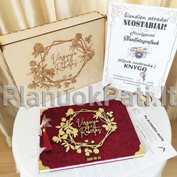 - Tinkama klijuoti nuotraukoms. Mūsų vestuvių svečių knyga su nuotraukomis pritaikyta ne tik svečių palinkėjimams, bet ir momentinėms ar fotoveidrodžio nuotraukoms įklijuoti, todėl jos tampa unikaliu fotografijų ir palinkėjimų albumu.