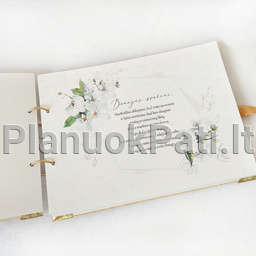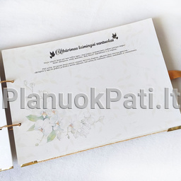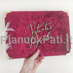 - Rankų darbas. Kiekviena knyga gaminama individualiai, kruopščiai iki mažiausių smulkmenų, todėl galime atsižvelgti į visus jūsų norus. Jei tarp mūsų dizainų nematote patinkančio, norite kažkokio ypatingo akcento, parašykite ir kartu sukursime naują jums skirtą palinkėjimų knygą.