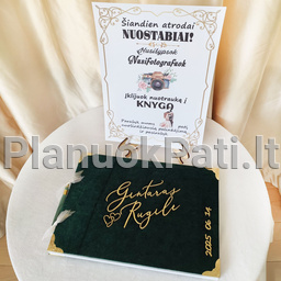 - Tinkama klijuoti nuotraukoms. Mūsų vestuvių svečių knyga su nuotraukomis pritaikyta ne tik svečių palinkėjimams, bet ir momentinėms ar fotoveidrodžio nuotraukoms įklijuoti, todėl jos tampa unikaliu fotografijų ir palinkėjimų albumu.