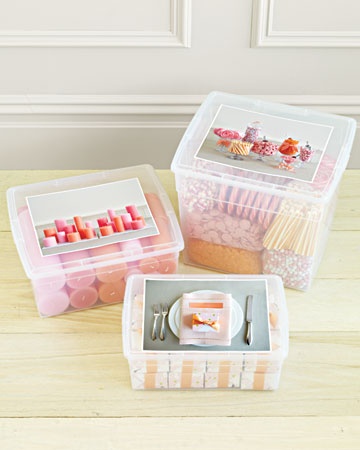 Jei norite, kad tam tikras dekoracijas - mini scenas jums suruoštų pagalbinikai, nes pati neturėsite tam laiko, kad viskas būtų tikrai taip, kaip suplanavote, sudėkite viską į atskiras dėžutes. Kiekvienoje dėžutėje turi būti būtent tai konkrečiai dekoracijai reikalingos detalės. Ant dėžutės viršaus užklijuokite nuotrauką, kurioje būtų atvaizduota, kaip turi atrodyti iš joje esančių daiktų sudėta dekoracija.