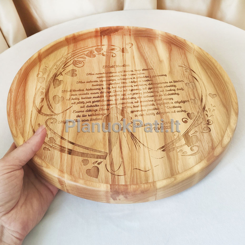 - jūsų padėkos žodžių įamžinimą. Juos galite išgraviruoti ant daikto, kurį tėvai galėtų naudoti kasdien, pavyzdžiui, padėklo. Kitas variantas - padėkos rėmeliai. Visi tėvai paprastai turi savo vaikų vestuvinę nuotrauką. Nustebinkite savo tėvelius - susitarkite su fotografu, kad dar iki vidurnakčio pagamintų jūsų vestuvių nuotrauką bei padovanokite ją rėmeliuose su padėkos žodžiais.