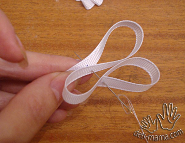 Pirmiausia padarykite drugelio sparnelius. Juos gaminame dėliodamos kaspinėlį (žr. paveikslėlius) ir susiūdamos. Kūnelį iš karoliukų pradedame gaminti nuo drugelio ūselių. Įveriame karoliuką ir ties vienu jo galu susukame vielutę. analogiškai darome su kitu karoliuku ir taip gauname du ūselius. Kūneliui veriame tris didesnius karoliukus (juos reikia verti ant vienos iš vielučių ir po kiekvieno karoliuko prisukti prie vielučių nuo ūselių). Kūnelį pritvirtiname prie sparnelių. Kitoje pusėje galima karštais klijais priklijuoti užsegimą ar, jei drugelį naudosite kaip dekoraciją rūbeliui, prisiūti prie rūbelio.