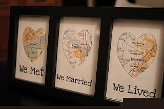 Jums reikės žemėlapio ir gražių rėmelių. Įamžinkite jums svarbias vietas kaip nuotraukas, pvz., kur susitikote, kur susituokėte, kur gyvenate.