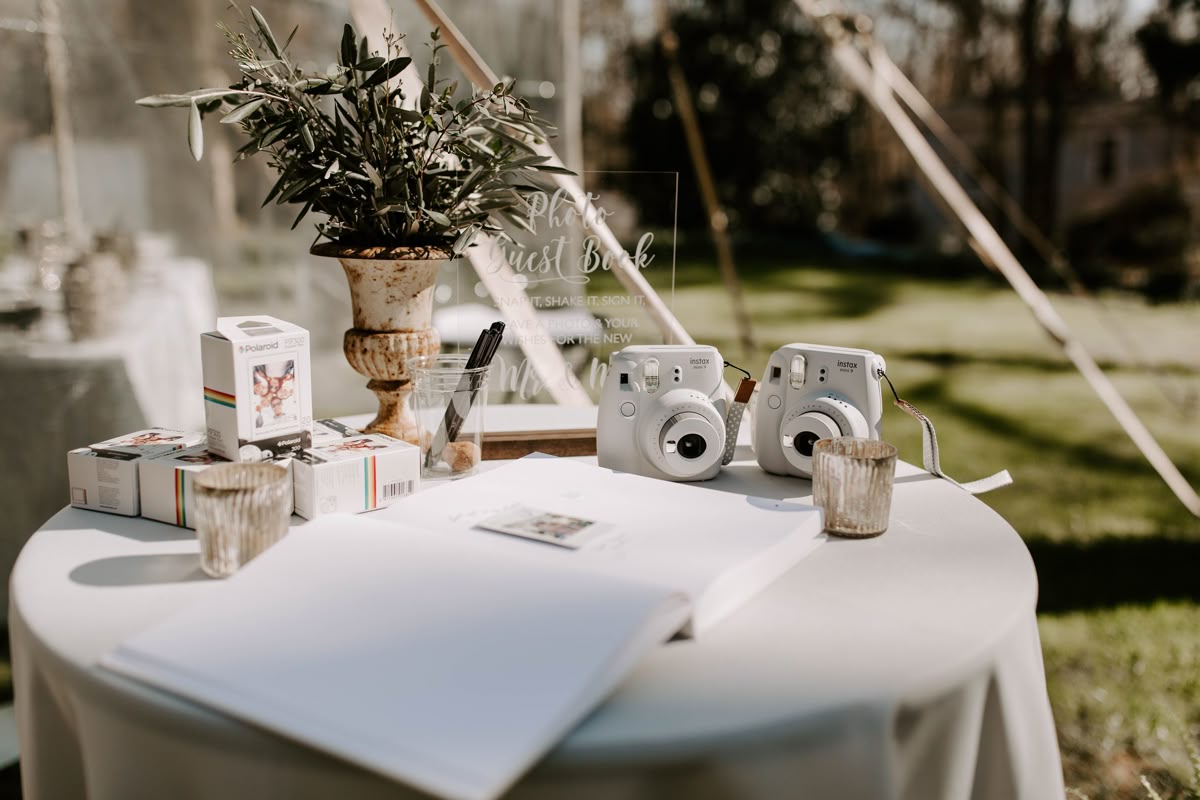 - Jei norite, kad svečiai fotografuotųsi laisvai viso vakaro metu – verta svarstyti 2–3 aparatus. Taip pat svarbu turėti pakankamai juostelių/nuotraukų plokštelių. Vidutiniškai skaičiuojama 1–1,5 nuotraukos vienam svečiui. Jei planuojate vieną nuotrauką klijuoti į palinkėjimų knygą, kitą pasilikti svečiui atminimui, nuotraukų reiktų turėti daugiau.
