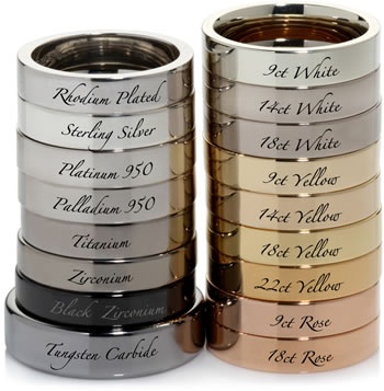 Medžiaga – auksas paprastai maišomas su nikeliu, cinku, sidabru, paladžiu ar variu. Kuo aukštesnė aukso praba, tuo metalas tauresnis, tačiau ir minkštesnis. Aukso spalva (raudona ar gelsva) priklauso nuo priemaišų. Spalva, paprastai rodžiu, dengti žiedai atsparesni braižymui, bet juos reikės kas kelerius metus atnaujinti, nes rodis nusitrina. Paprastai geltonasis auksas labiau tinka gelsvaodėms moterims, blyškiaodėms — baltasis auksas, sidabras ar platina. Vietoj aukso galima naudoti platiną. Ji sunkesnė, tvirtesnė, atsparesnė įbrėžimams, ilgiau išlieka blizgi. Kita alternatyva auksui – volframas arba titanas. Tokie žiedai nesibraižo, nekeičia formos ir yra dešimt kartų tvirtesni už auksą. Titanui Moso kietumo skalėje skiriama 6, o volframui - 9 balai. Tai reiškia, kad titano žiedą subraižyti gali daugiau medžiagų, nei volframo vestuvinį žiedą. Tačiau nelaimės atveju, pavyzdžiui, ištinus pirštui, volframo žiedus įmanoma nuimti tik spaudžiant didele jėga specialiomis replėmis, kol jie suskyla į mažesnes dalis.
