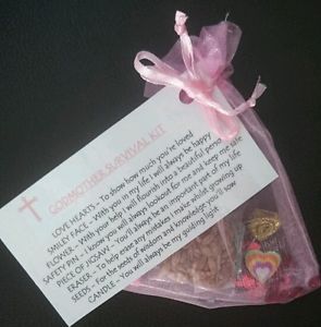 Tokias mielas dovanėles - krikštatėvių išgyvenimo rinkinukus tėvai gali padovanoti būsimiems krikštatėviams tiek prieš šventę, tiek kviečiant būti krikšto tėvais. Juos pagaminti galite pasitelkusios savo fantaziją. Štai keletas idėjų, ką įdėti: