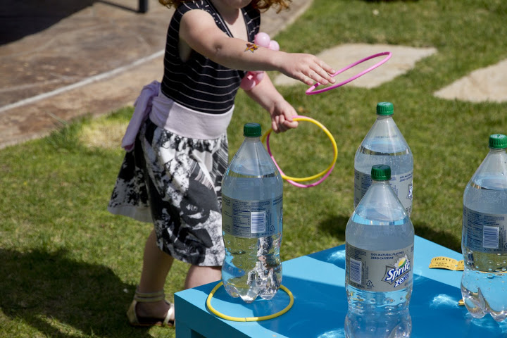 Šis žaidimas patiks ne tik vaikams, bet ir suaugusiems. Na o didelio pasiruošimo jam tikrai nereikia. Tiesiog turėkite didelių gaivių gėrimų butelių ir šiaudelių. Šiuos susukite į apskritimą ir galus sutvirtinkite, kad ir lipnia juostele. Žaidimo taisyklės paprastos - reikia kuo daugiau žiedelių užmesti ant butelių stovint ant starto linijos. Laimi daugiausiai žiedelių užmetęs žaidėjas.