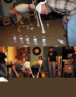 Šiam žaidimui svarbiausia turėti ilgų kojinių. Į jas įdėkite kažką sunkaus viename kojinės gale. Tai gali būti obuolys, apelsinas ar panašiai. Kojinės viršų užmauname žaidėjams ant galvų. Ant grindų išdėliojame arba butelius arba vienkartines stiklines. Dėlioti galima linija arba apskritimu, kurio centre būtų žaidėjas. Duodamas laikas, pavyzdžiui, minutė, ir per jį žaidėjas turi išmušinėti su kojine kuo daugiau butelių.