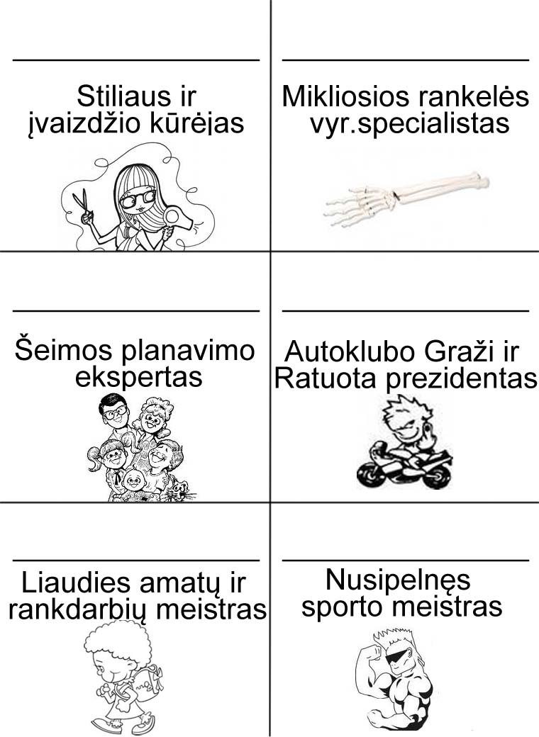 Korteles su profesijomis galite atsispausdinti čia: