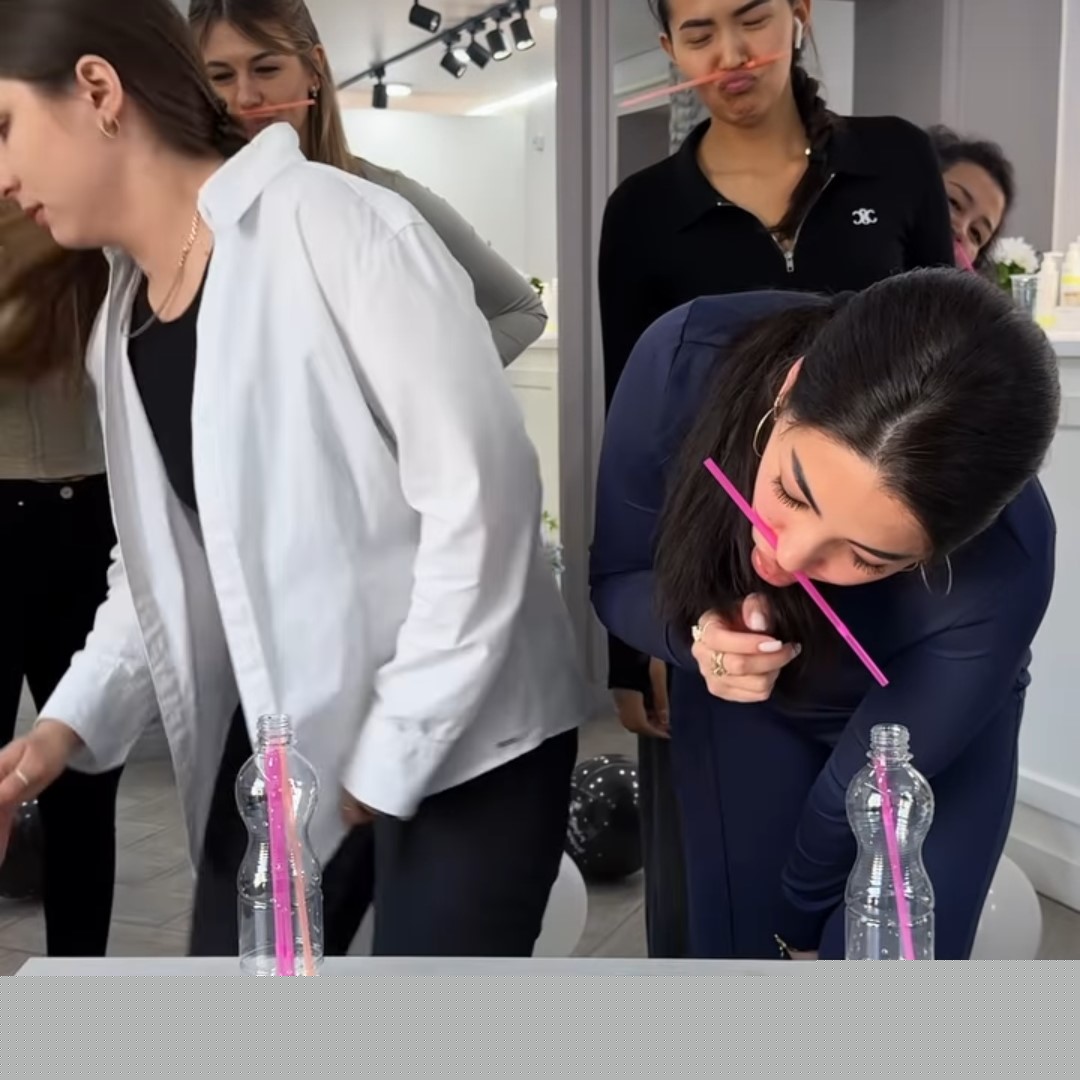 Jums reikės žaidėjus suskirstyti į dvi komandas. Jei žaidėjų yra daugiau, galite suskirstyti ir į daugiau komandų. Paruoškite tiek buteliukų platesniu kakleliu, kiek bus komandų. Taip pat turėkite atitinkamą skaičių šiaudelių. Vietoj šiaudelių šiam žaidimui tiks ir flomasteriai. Kiekvienam žaidėjui išdalinama po šiaudelį. Davus startą reikia su šiaudeliu, lūpomis prispaustu prie nosies, nueiti iki butelio ir palenkus galvą šiaudelį į butelį įdėti. Negalima naudoti rankų. Jei šiaudelis iškrenta, jį reikia pasitaisyti ir bandyti dar kartą.