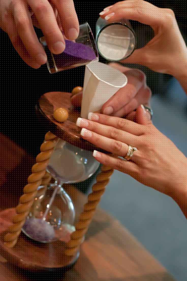 Vietoj tradicinio stiklinio indo ar vazos smėliui suberti galite naudoti smėlio laikrodį. Tik šiuo atveju smėlio raštas nesigaus, nes smiltelės susimaišys viena su kita. Jei naudosite šią idėją, žodžiai turėtų būti apie tai, kad laikrodį naudokite ginčų metu ir išbyrėjus smiltelėms laikas taikytis.