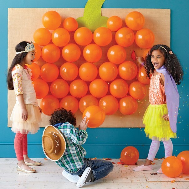 Iš anksto paruoškite ant sienos ar lentos suklijuotus balionus (galima padaryti kokią nors figūrą iš jų). Tegu žaidėjai susprogdina balionus. Juose įdėkite lapelius su palinkėjimais arba raštelius su nuoroda, kur paslėptas prizas.