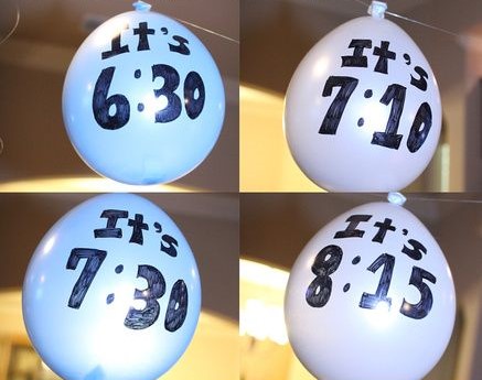 Jums reikės balionų. Turėkite jų tiek, kiek planuojate švęsti laukdami vidurnakčio. Geriausia balioną skirti pusvalandžiui, o paskutinę valandą - kas penkiolika minučių. Pripūstus balionus sukabinkite ant siūlo. Galite užrašyti ant kiekvieno, kurią valandą jį reikia sprogdinti. Atėjus reikiamam momentui duokite vaikams smaigę (pvz. dantų krapštuką), kad šie susprogdintų balioną. Taip vaikams bus kur kas smagiau laukti vidurnakčio, o laikas praeis greičiau. Kiekvienam pusvalandžiui iki kito baliono sprogdinimo sugalvokite po kažkokią veiklą, kad ir išeiti į lauką ar balkoną ir sudeginti šaltas ugneles, padainuoti daineles, pasakyti palinkėjimus, suvalgyti žele ir panašiai.