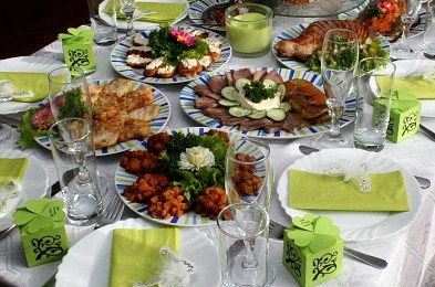 Jei norite pavasariškai žalių krikštynų, papuoškite šventės vietą žaliais akcentais. Jums reikės žalių vienkartinių servetėlių, žalių žvakių, svečiams galite padėti po žalią dėžutę - dovanėlę. Sienas ar, jei švenčiate lauke, pavėsinės briaunas galite papuošti dobilėlių lapelių motyvų girliandomis. Jas išsikirpkite iš žalsvo popieriaus pagal dobilėlio lapo trafaretą. Derinkite žalią šventės spalvą su balta, nepadauginkite žalios.