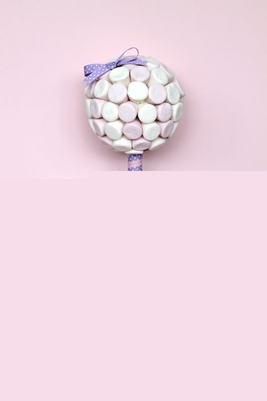 Pasirinkite vazonėlį. Pagal jį nusipjaukite reikiamo ilgio medinį pagaliuką. Jį dekoruokite apsukdama kaspinėliais, kuriuos pritvirtinkite karštais klijais. Polistirolo kamuoliuke padarykite apie 1,5cm gylio duobutę, į kurią įstatysite pagaliuką. Žiūrėkite, kad ji eitų link centro, kitaip medelis bus kreivas. Karštais klijais pritvirtinkite kamuoliuką prie lazdelės. Įtvirtinkite lazdelę vazonėlyje. Tam galite panaudoti modeliavimo šokoladą (pvz. Cocoform) arba bet ką, kas tvirtai išlaikys medelį. Jei naudosite modeliavimo šokoladą, palikite jį sustingti per naktį. Medeliui dekoruoti išsitirpinkite saldainius (ar jūsų turimą šokoladą). Nutepkite juo kamuoliuką. Palaukite kol sustings. Dėkite karšto šokolado taškelį, ant jo klijuokite zefyriuką ir palaikykite, kad priliptų. Taškeliams daryti galite naudoti popierinį maišelį, bet atsiminkite, kad šokoladas greitai stingsta, tad teks panaudoti ne vieną maišelį, kol pabaigsite gaminti medelį. Panašiu principu galima klijuoti ne tik zefyriukus, bet ir kitus saldainukus.